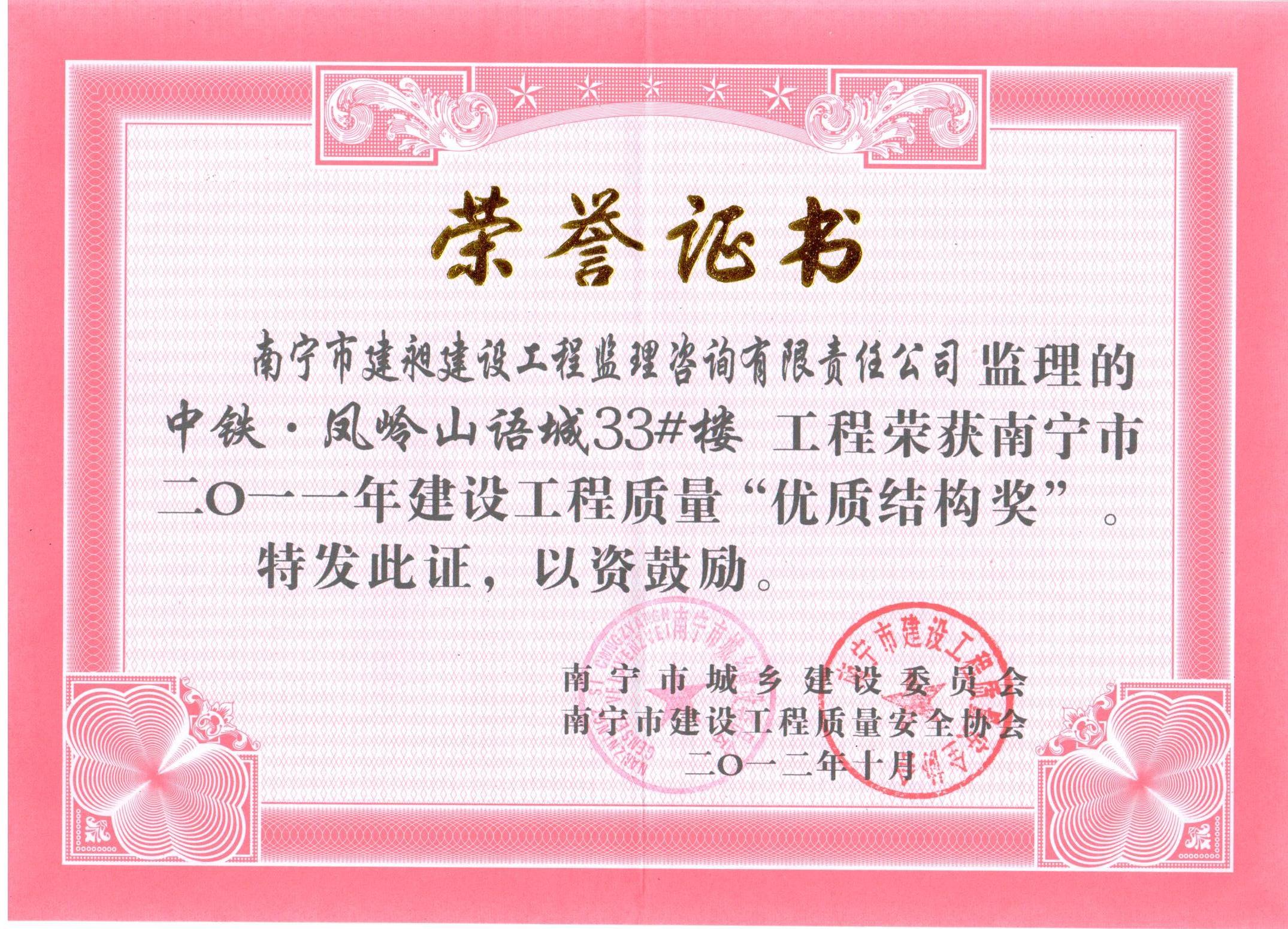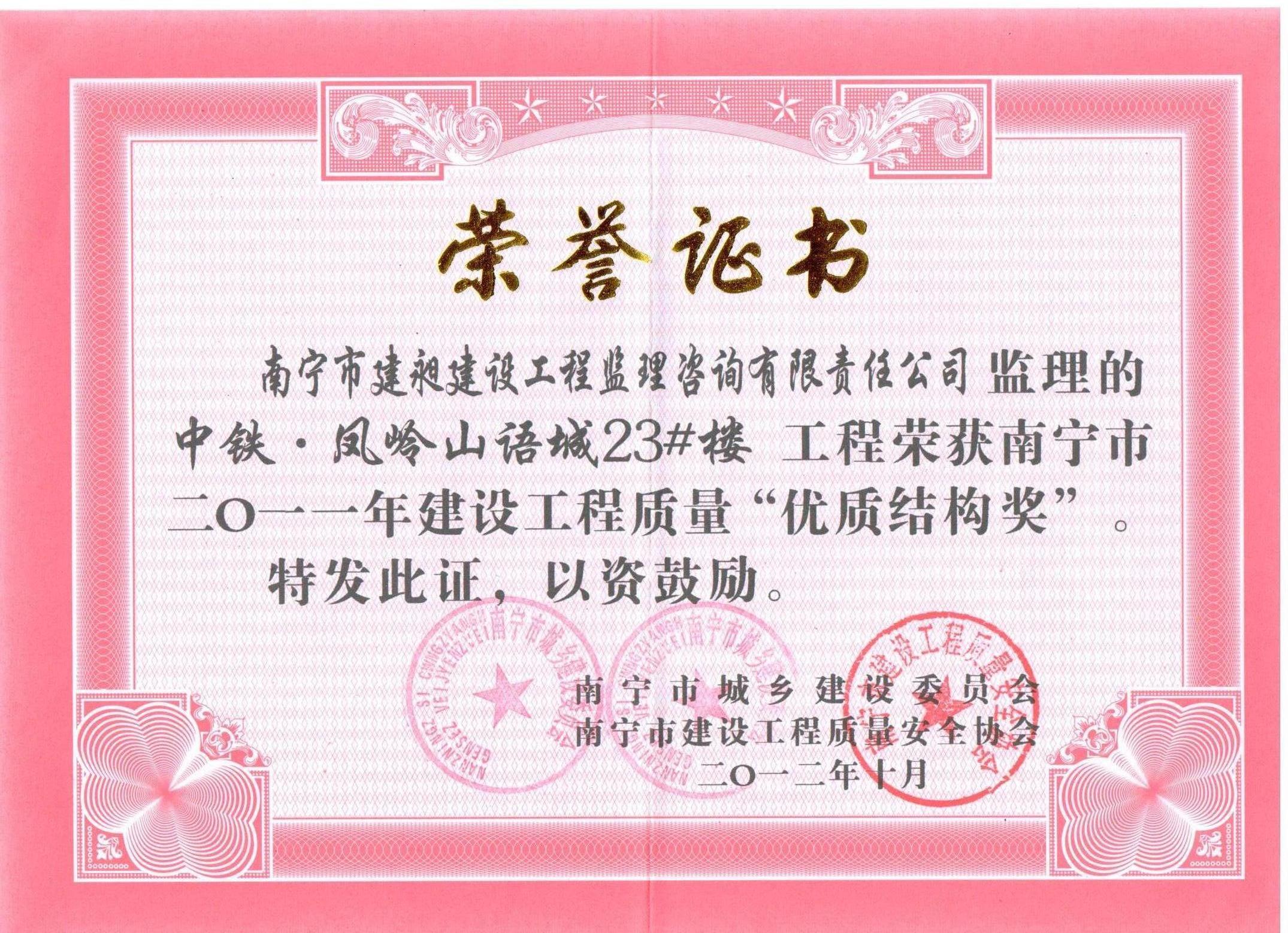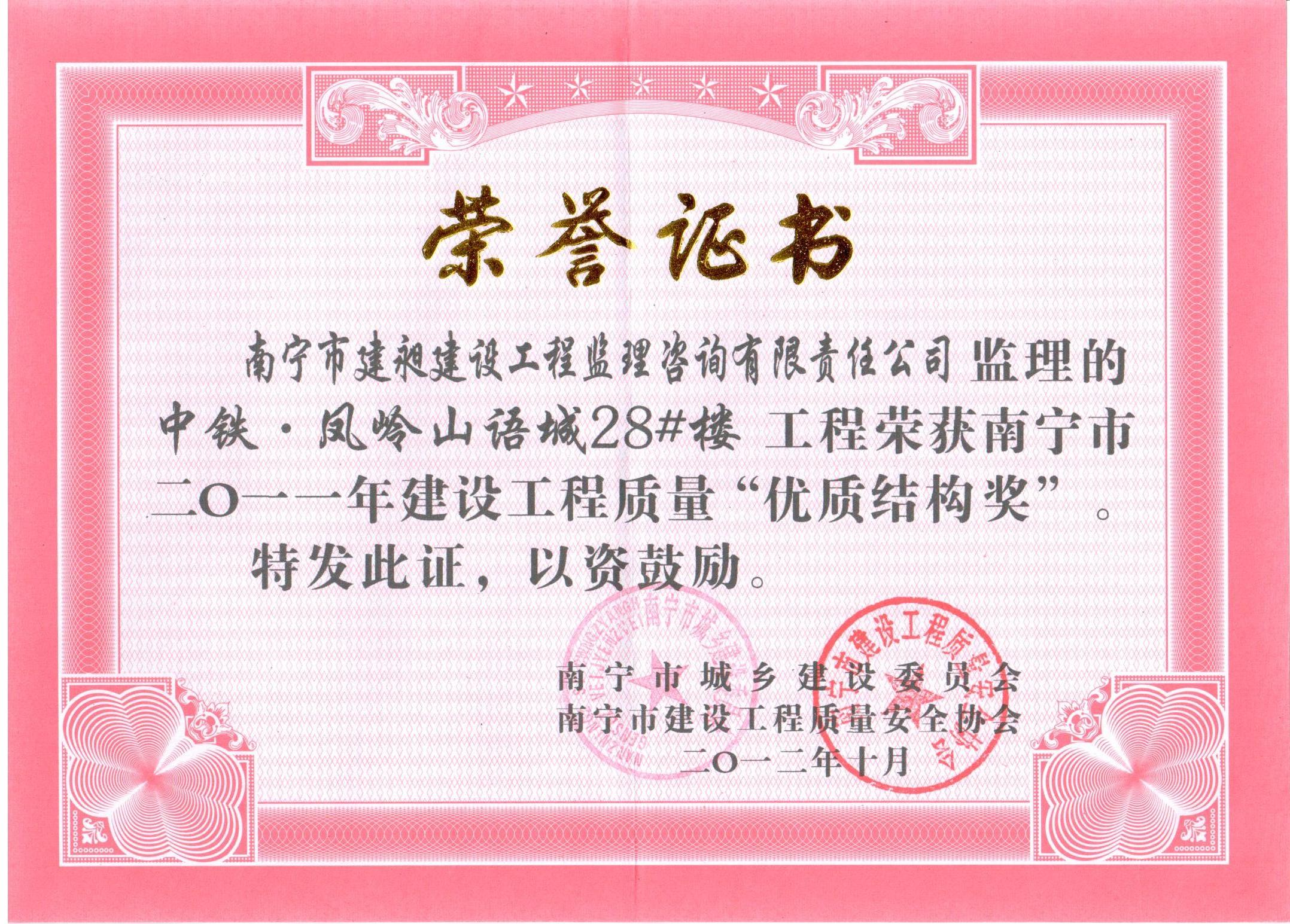 下一篇:我公司被評為南寧市2013年“先進(jìn)監(jiān)理單位”榮譽稱號