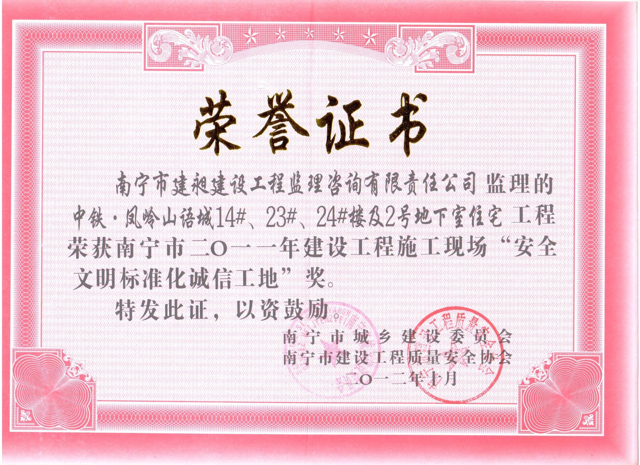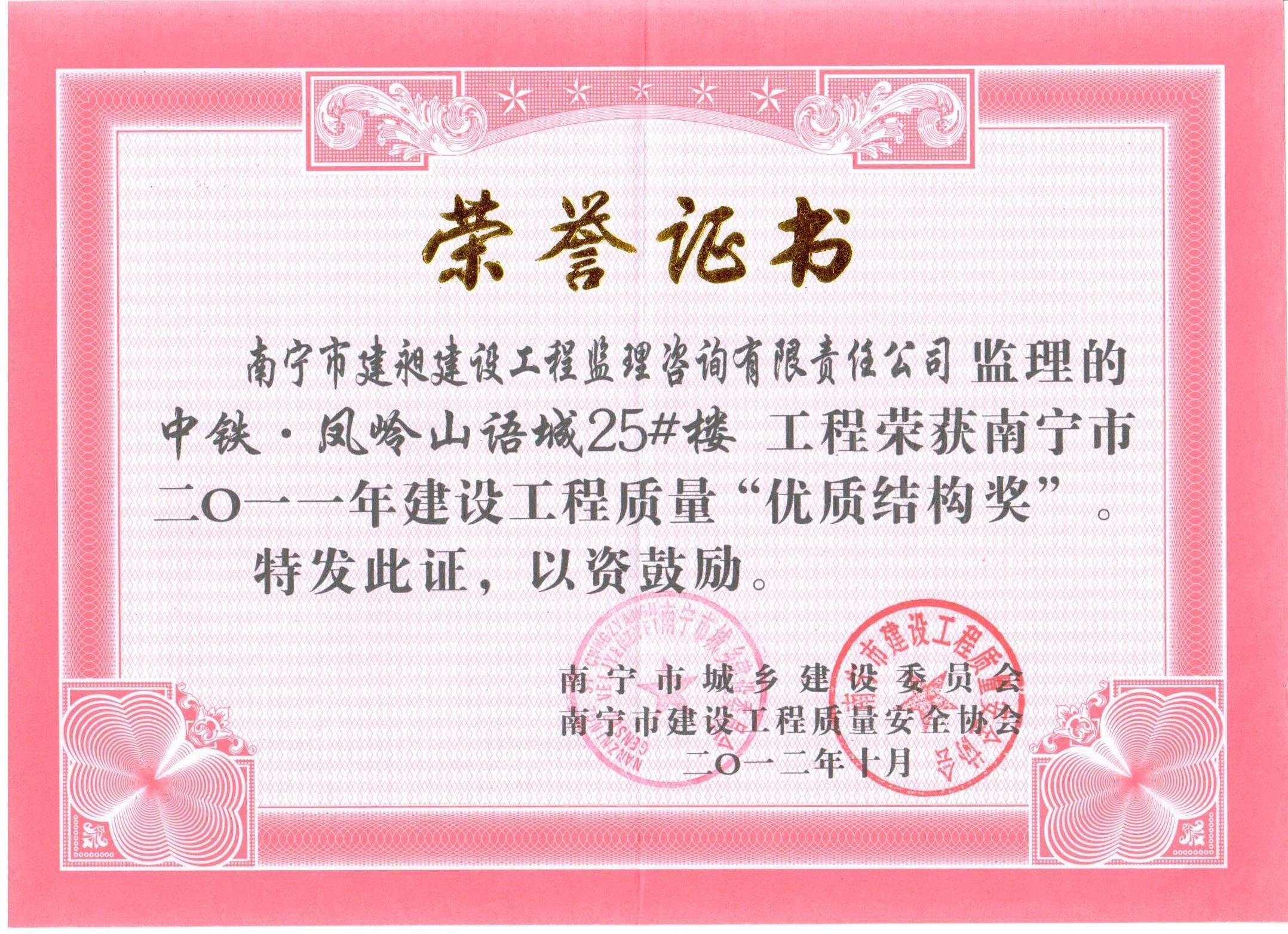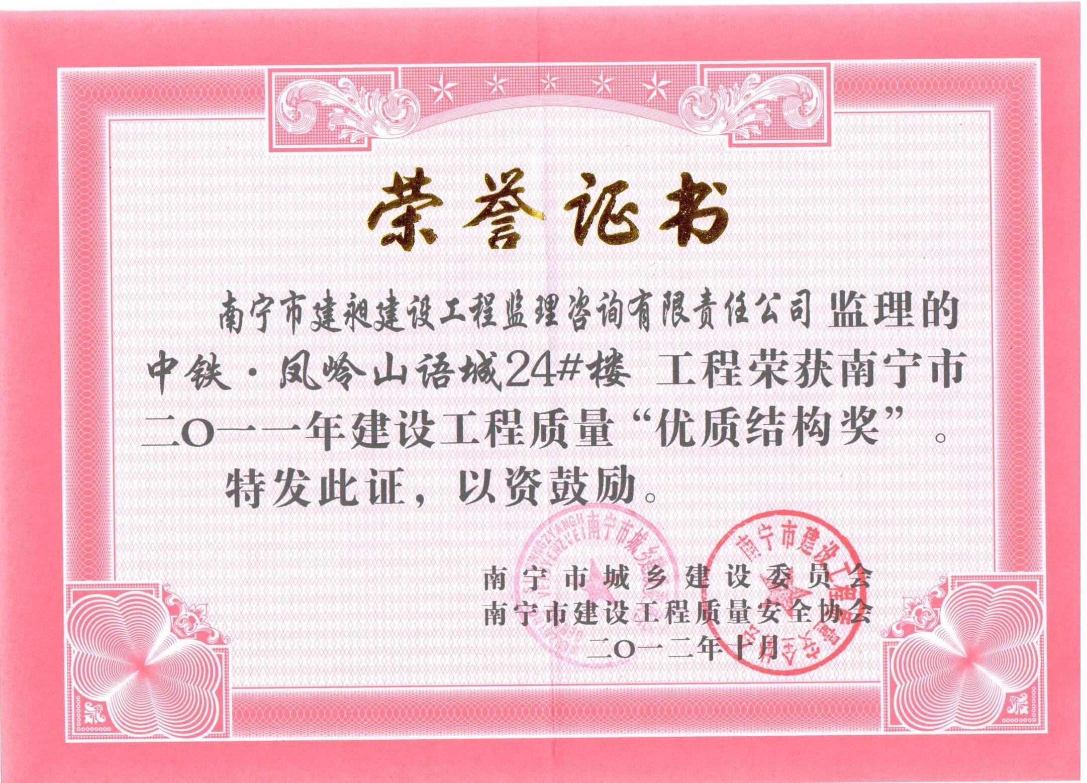 下一篇:我公司被評為南寧市2013年“先進(jìn)監(jiān)理單位”榮譽稱號