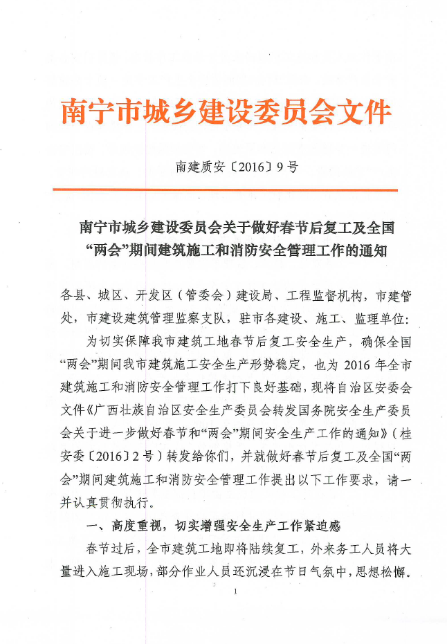 下一篇:自治區(qū)住房城鄉(xiāng)建設(shè)廳關(guān)于認(rèn)真做好節(jié)后復(fù)工及全國“兩會”期間全區(qū)建筑施工安全生產(chǎn)工作的通知(桂建管〔2016〕9號)