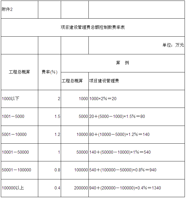 2.項(xiàng)目建設(shè)管理費(fèi)總額控制數(shù)費(fèi)率表