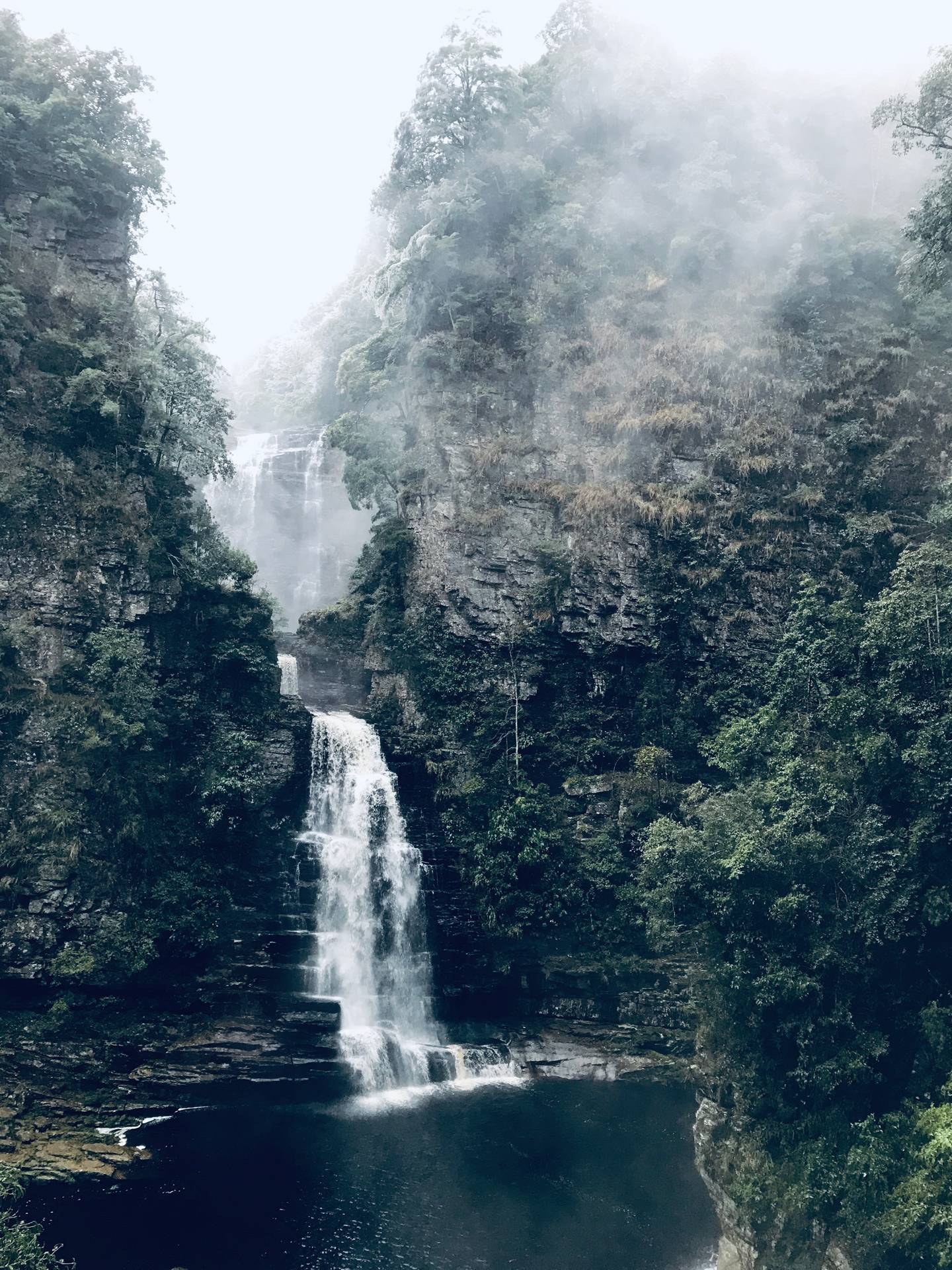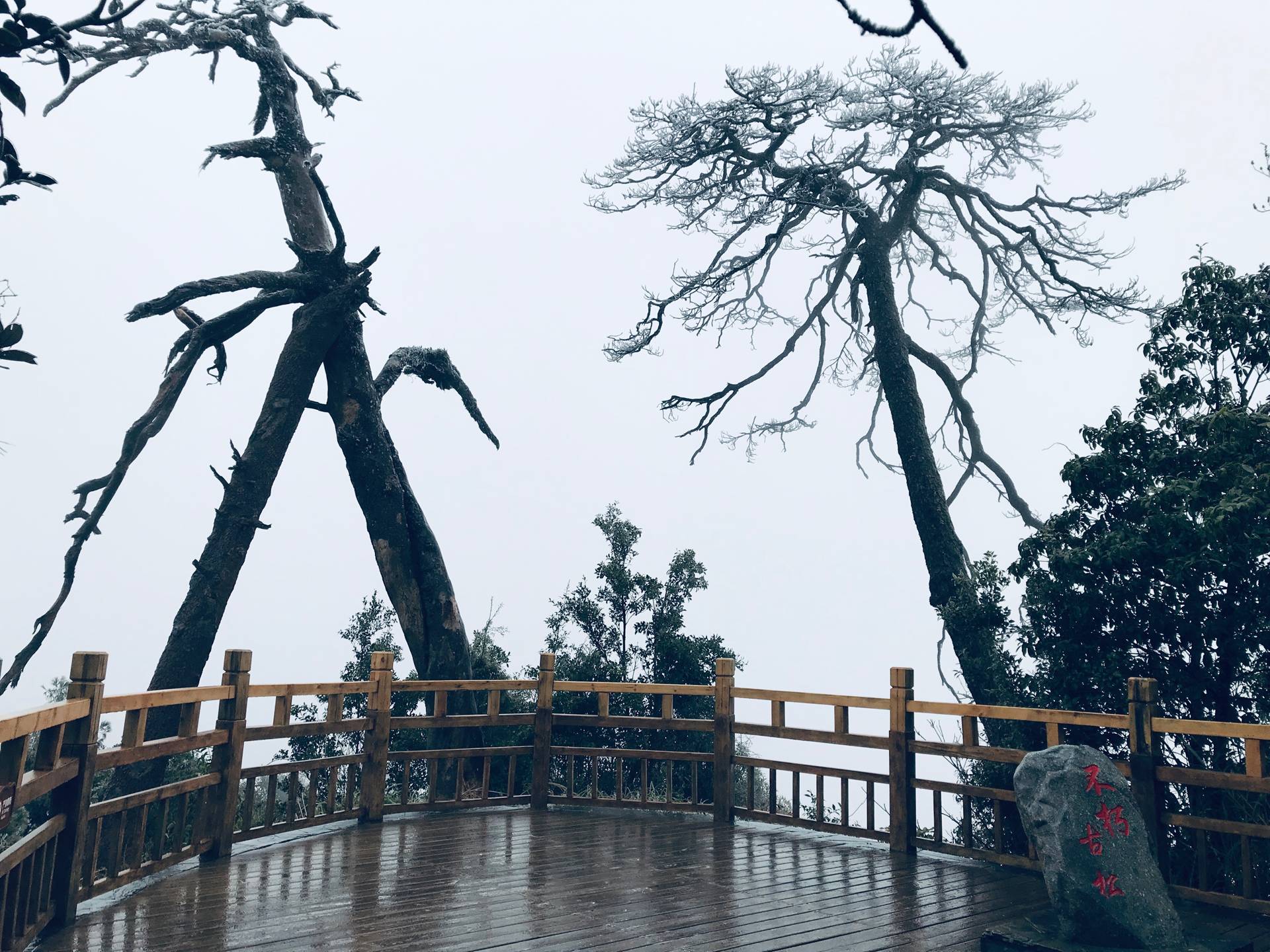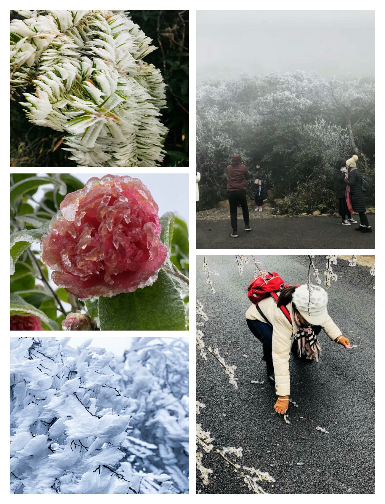 一夜休整后,第二天大家冒雨開啟了向往的“養(yǎng)生之旅”和“神奇之旅”行程,路面結冰打滑,一行人小心冀冀,雖連滾帶爬,卻興奮難掩,400年的不老松蒼勁笑迎建昶人,金龜瀑布在一片冰凍世界里飛泄而下,動感十足,而龍湖風光霧氣騰騰,仿佛置身仙境。登上海拔1270米的北回歸線標志塔,近觀一棵棵大樹凝霜掛雪,一夜之間變成玉樹瓊枝,舉目遠眺,山頂上滿樹冰掛,一派千樹萬樹梨花開的美麗景象盡收眼底。一路走走拍拍,晶瑩剔透的冰掛,虛無縹緲的云霧,漫山遍野的霧凇,讓人彷佛進入到了潔白的童話世界。
